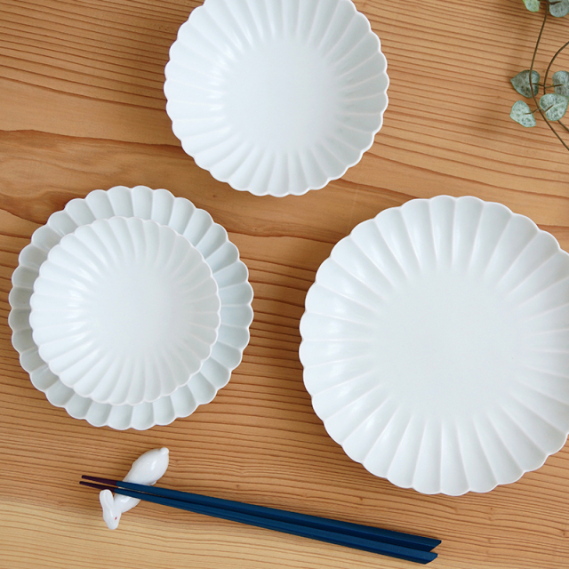 | 製品名: | 白マット 菊彫5寸皿 |
