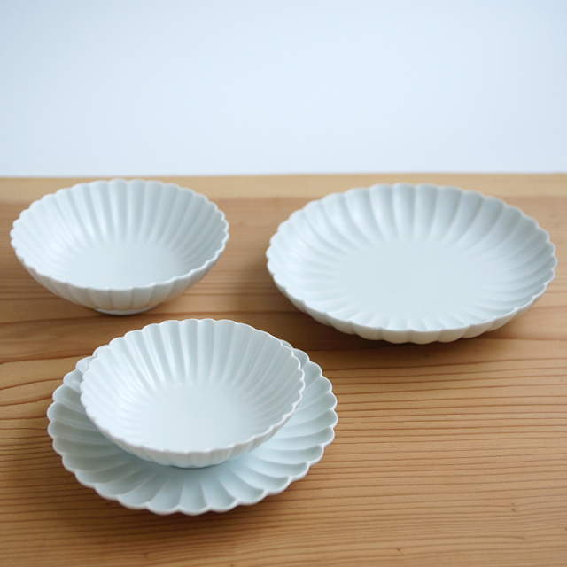 白マット 菊彫取鉢 (大)