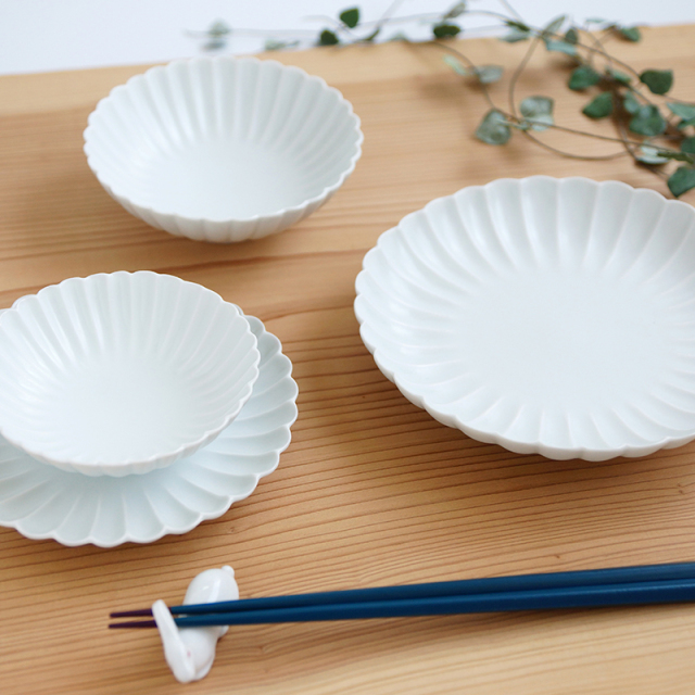 白マット 菊彫取鉢 (小)